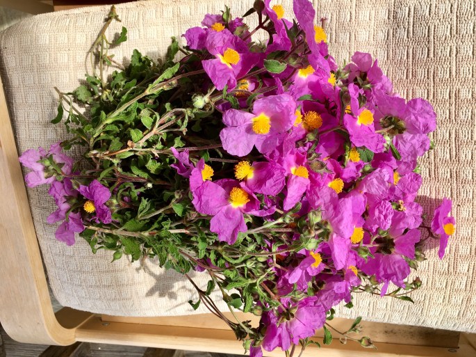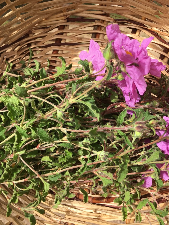 Die Zistrosen blühen gerade und dann soll man sie gegen Mittag pflücken.